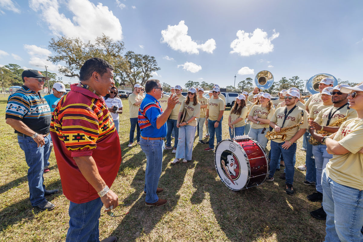In the immediate wake of the resolution, FSU and the Tribe renewed their efforts to strengthen their relationship. Seminole Tribal members constructed traditional chickee buildings on the FSU campus, the university created new curriculum to teach Seminole history and culture, and FSU commissioned and unveiled the “The Seminole Family” statue on campus. It also bestowed an honorary Doctor of Laws degree on Seminole Tribal member and General Counsel Jim Shore. Just as importantly, university administrators began to emphasize the responsibility that FSU’s community had in upholding the relationship. Many student traditions were abandoned as the university considered what it meant to honor their partnership with the Tribe.