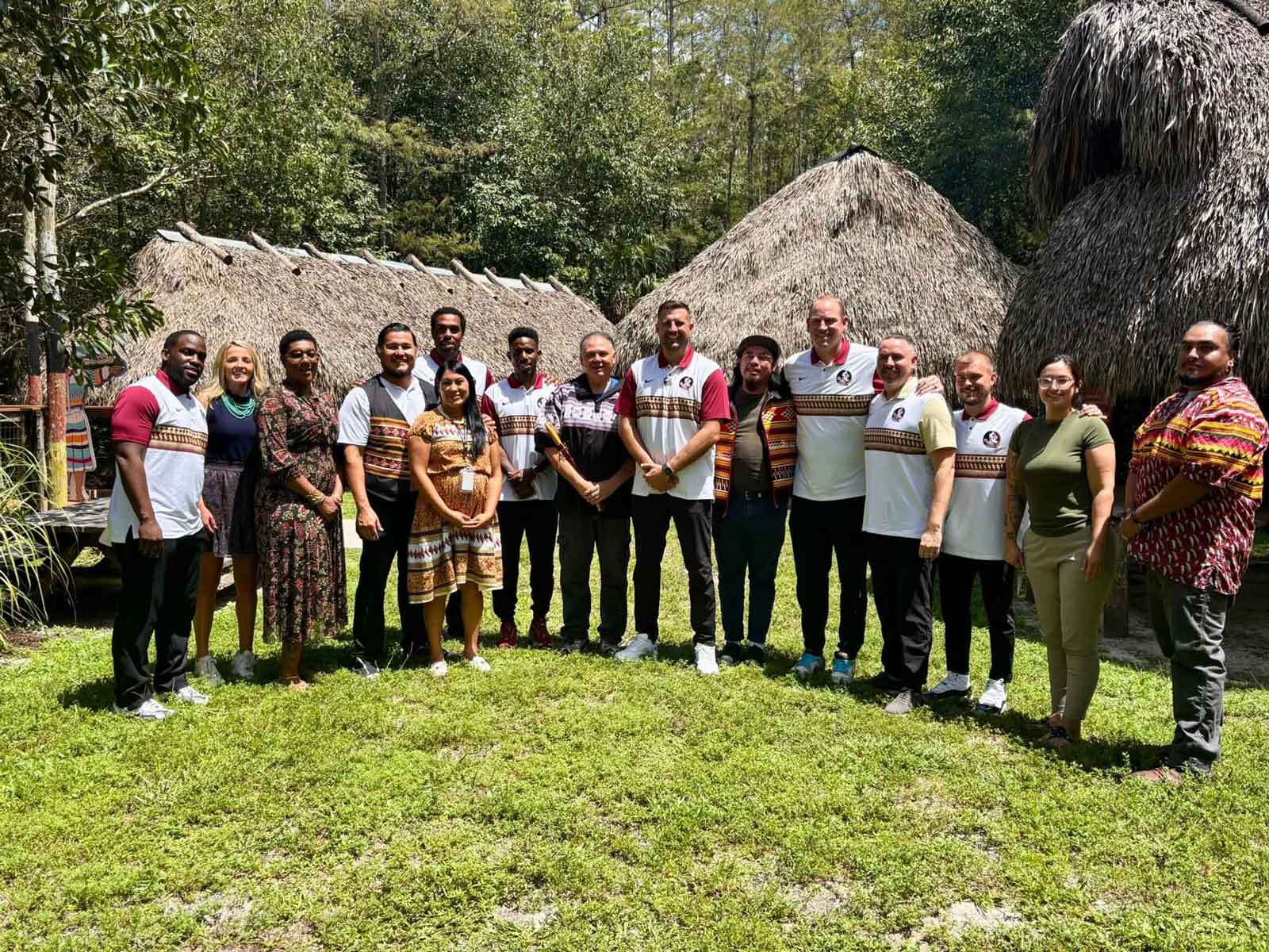 FSU Men’s Basketball coaches and staff, including head basketball coach Luke Loucks, visit with members of the Seminole Tribe of Florida at Big Cypress Reservation, September 2025.